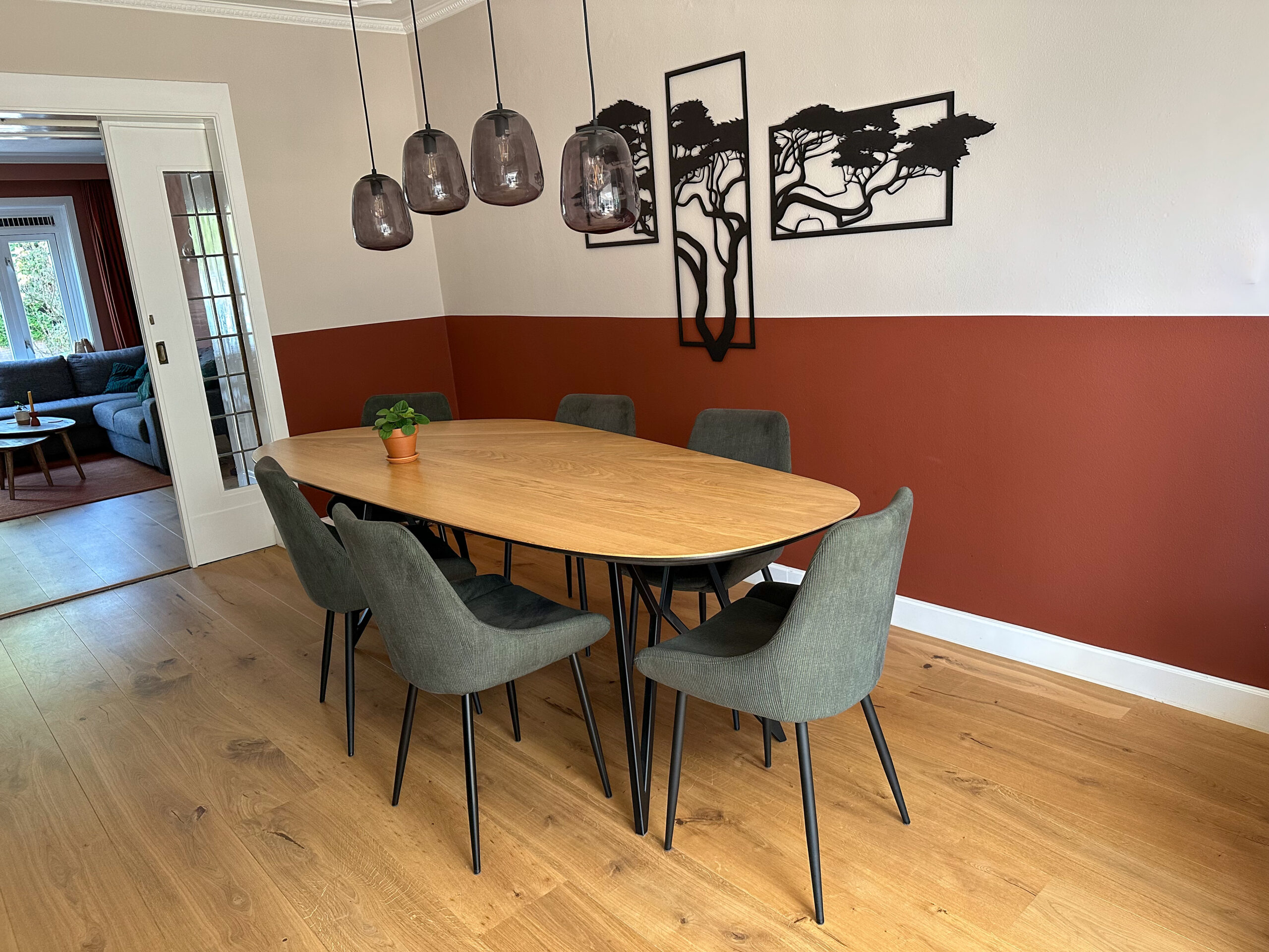 Bij het ontwerpen van dit interieur stond de wens van de bewoners centraal: een huis dat bij binnenkomst direct huiselijk en warm aanvoelt. Er is gekozen voor warme kleurenpaletten en natuurlijke tinten, gecombineerd met materialen zoals hout en linnen. Het resultaat is een interieur dat rust uitstraalt, maar tegelijkertijd vol karakter zit. Denk aan warme aardetinten, groene accenten en natuurlijke texturen die perfect samenkomen tot een harmonieus geheel.